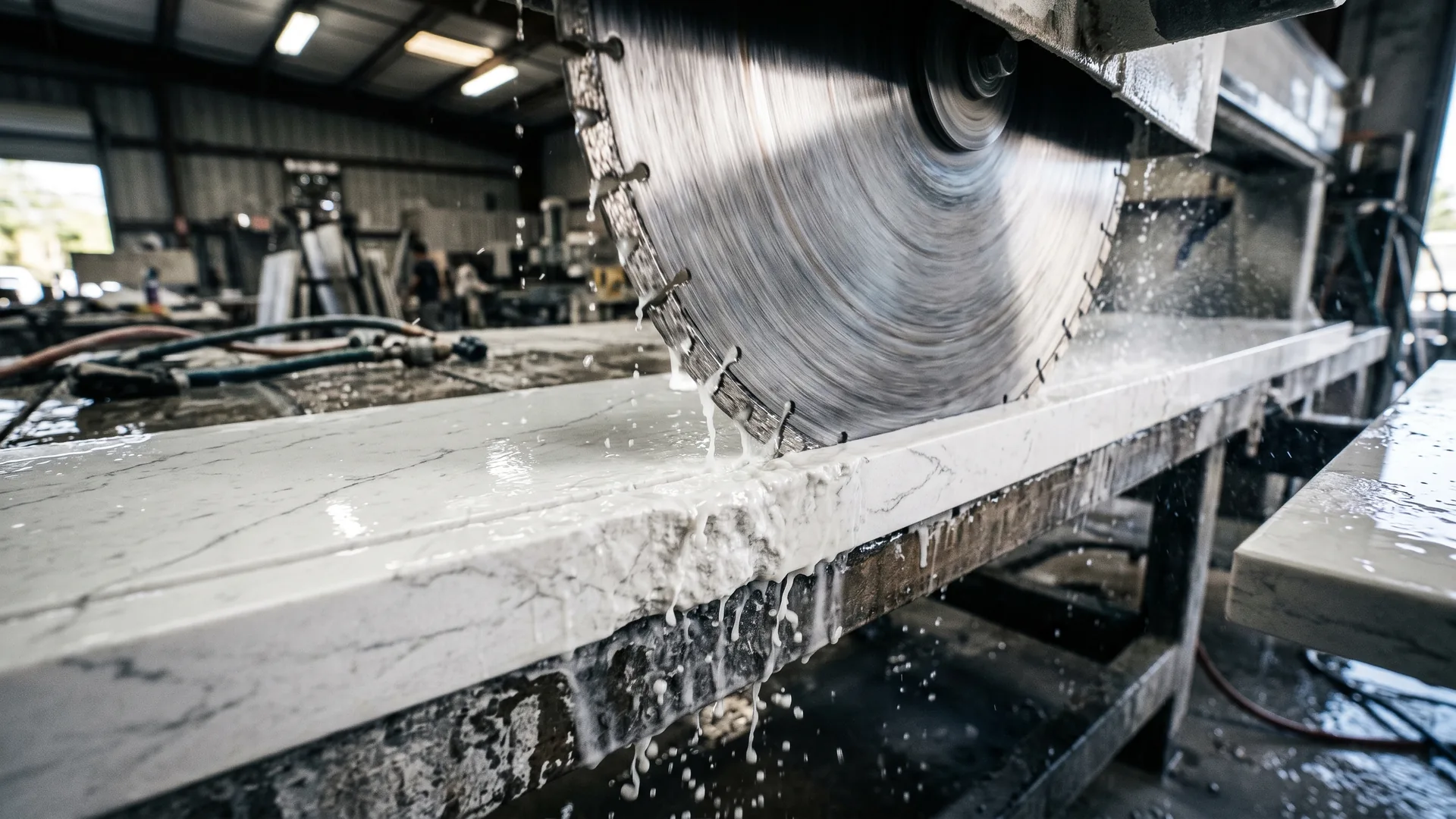 Our bridge saw and stone polishing equipment live at 1960 W 9th St in Riviera Beach. Every countertop we install is cut, profiled, and polished by our own team. No subbed-out fabrication, no middle markup.